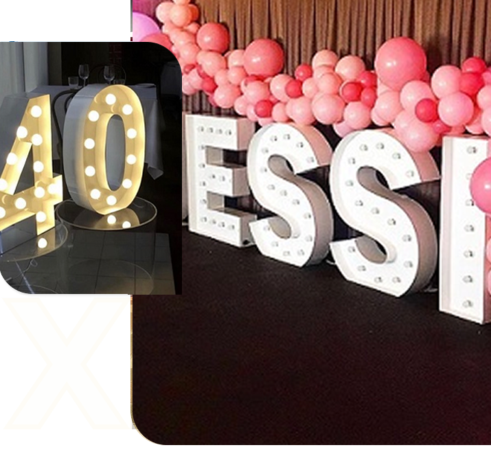 From corporate functions, birthdays, or weddings, our light-up letters and numbers will transform your event and party space to new heights of sophistication and excitement.